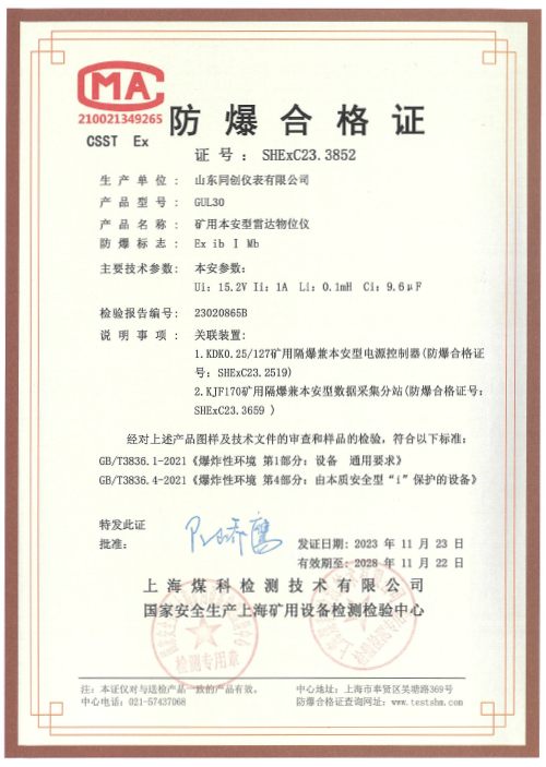 GUL15防爆合格證